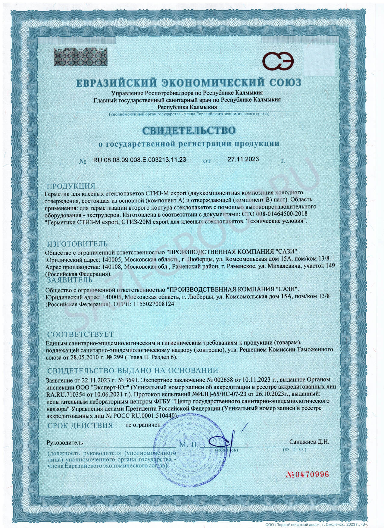 • Свидетельство о госрегистрации Свидетельство о госрегистрации Сазиласт 24 Комфорт Свидетельство о госрегистрации Сазиласт 24 Комфорт